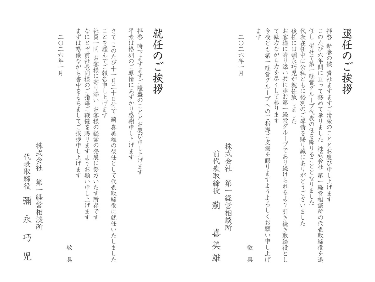 第一経営グループ代表交代のお知らせ